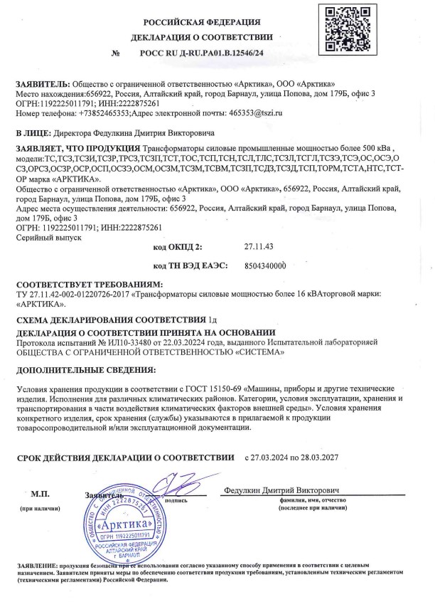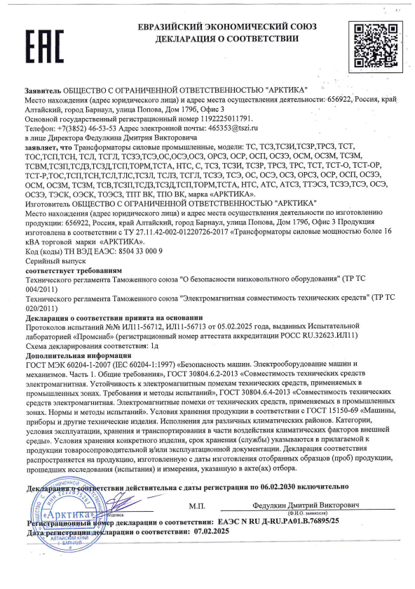 Завод трансформаторного оборудования «Арктика» - динамично развивающееся предприятие, более 30 лет специализирующееся на выпуске трансформаторов различного назначения.