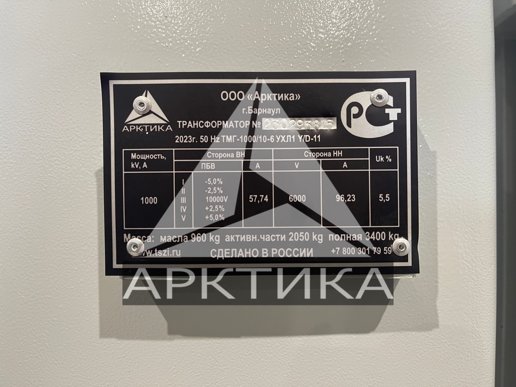 | Мощность, кВА | 1000,0 |